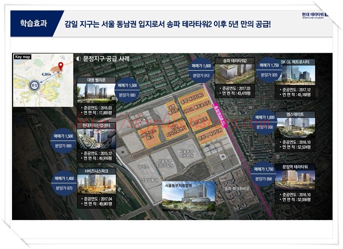 이미 언급한 문정지구의 가격상승으로 더욱 호평받는 감일 현대테라타워는